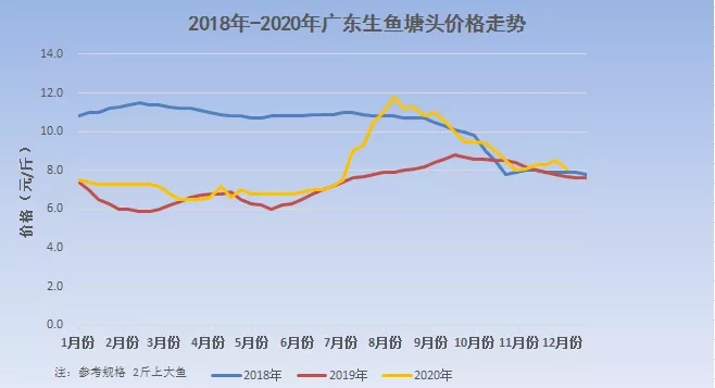 山東本周價格維穩。現在山東走市場的魚很少,平2斤價格為8.5-9元/斤之間,平均2.5斤價格為9-9.5元/斤,隨著元旦到來,市場流通快了點,但是養殖戶總體來說出魚積極性較低,基本在等價格,當地魚販表示生魚魚價應該要漲了。