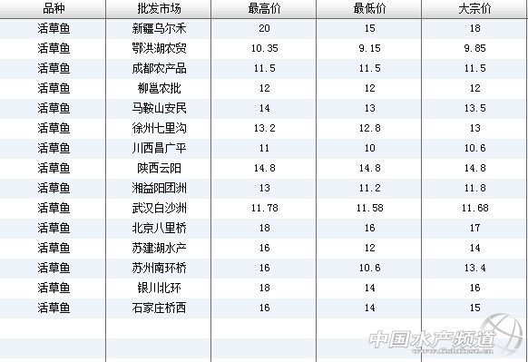 【關鍵字】:草魚 價格行情 批發市場