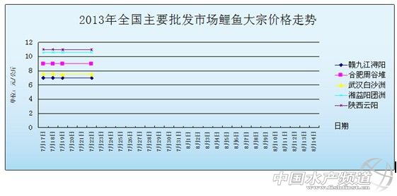 2013年7月22日全國主要批發市場鯉魚價格行情