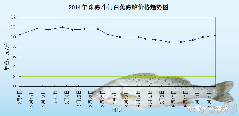 從2014年4月截至到目前為止,珠海斗門白蕉海鱸的具體價格分別是:
