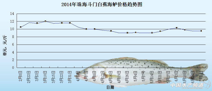 從2014年4月截至到目前為止,珠海斗門白蕉海鱸的具體價格分別是: