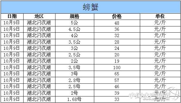 2014年10月9日湖北汈汊湖河蟹價格行情