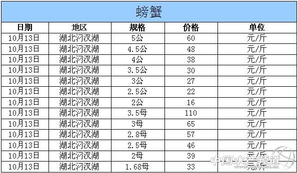 2014年10月13日湖北汈汊湖河蟹價格行情