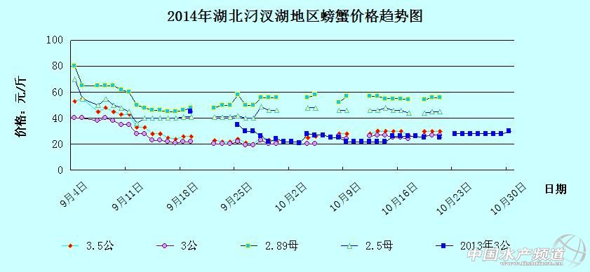 2014年10月21日湖北汈汊湖河蟹價格行情