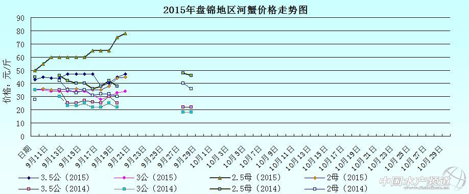2015年9月21日遼寧盤錦河蟹價格行情