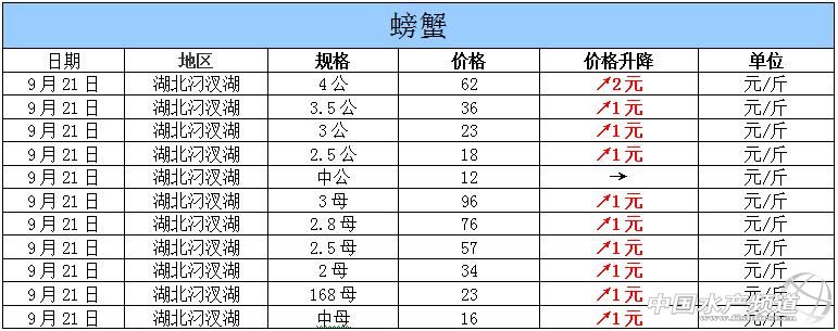 中國水產頻道獨家報道,據網友提供消息,2015年9月21日湖北汈汊湖主產區河蟹價格行情如下: