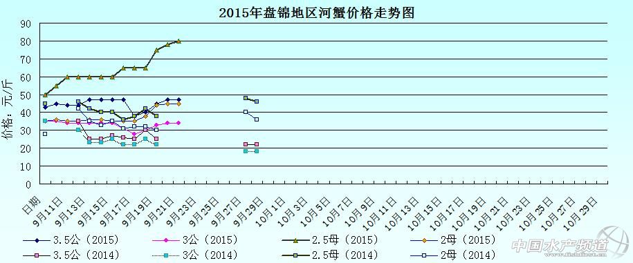 中國水產頻道獨家報道,據網友提供消息,2015年9月22日遼寧盤錦河蟹價格行情如下: