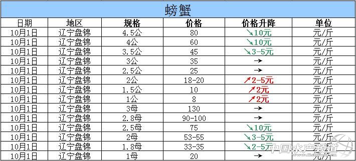 2015年10月1日遼寧盤錦河蟹價格行情