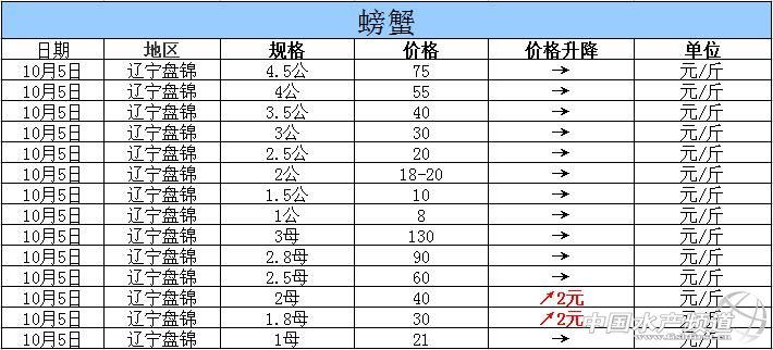 2015年10月5日遼寧盤錦河蟹價格行情
