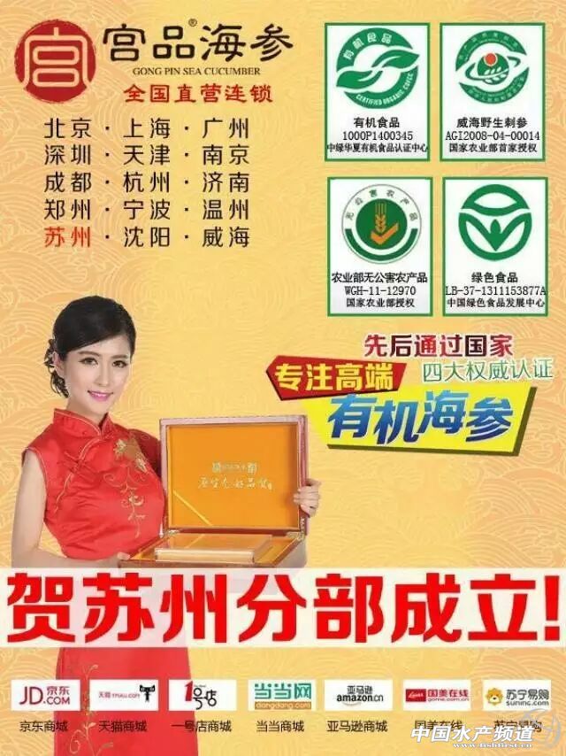 據(jù)記者了解,在最新發(fā)布的“十大海參品牌”排行榜中,宮品海參高居第2名,品牌影響力和美譽(yù)度業(yè)內(nèi)領(lǐng)先。值得一提的是宮品海參品牌很早就通過了無公害食品、綠色食品、有機(jī)食品、野生刺參使用授權(quán)等認(rèn)證,品質(zhì)值得信賴;另外,宮品海參廠家全直銷,縮減中間流通環(huán)節(jié),以直營平價(jià)的優(yōu)勢把海參拉下奢侈品神壇,讓海參產(chǎn)品飛入尋常百姓家中。目前,宮品海參直營網(wǎng)點(diǎn)已覆蓋沈陽、北京、上海、天津、南京、廣州、深圳、鄭州、成都、寧波、杭州、溫州、蘇州、濟(jì)南等全國各大一二線城市,贏得眾多消費(fèi)者的青睞。