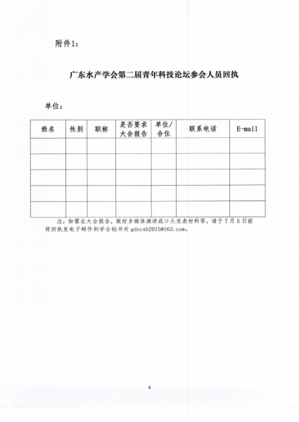 附件:1、廣東水產(chǎn)學會第二屆青年科技論壇參會人員回執(zhí) [attach]236825[/attach]