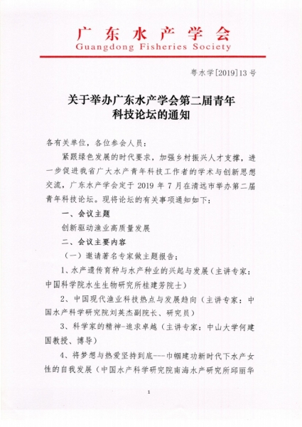 廣東水產(chǎn)學會第二屆青年科技論壇