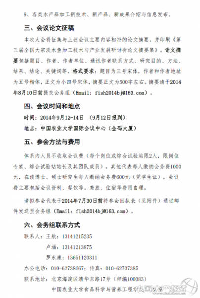 第三屆全國大宗淡水魚加工技術與產業發展研討會[北京]