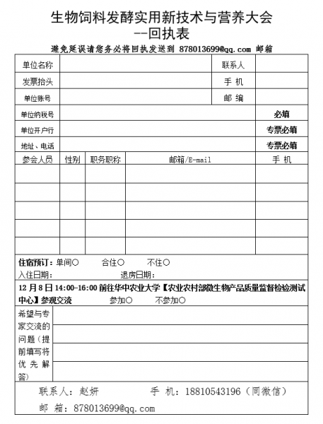 12月武漢--生物飼料發酵實用新技術與營養科學大會回執表.doc