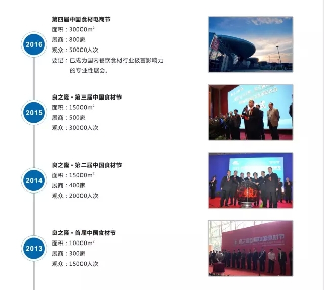 “中國(guó)食材節(jié)”始創(chuàng)于2008年,是圍繞“新菜、招標(biāo)、訂貨、論壇”為核心的專業(yè)食材供應(yīng)鏈集成服務(wù)性展會(huì),迄今已走過(guò)九年歷程。2015年3月舉辦的“良之隆•第三屆中國(guó)食材節(jié)”規(guī)模15000平米,中外參展商500余家,專業(yè)觀眾及采購(gòu)商30000人次,已成為國(guó)內(nèi)餐飲食材行業(yè)極富影響力的專業(yè)性展會(huì)。