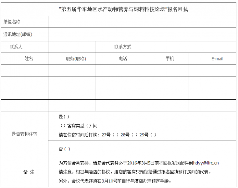 請通過電子郵件(hdyy@ffrc.cn)向會務組發送報名回執(見附件)的方式進行注冊。會議通知及報告回執word版可到淡水漁業研究中心網站(www.ffrc.cn)上下載。