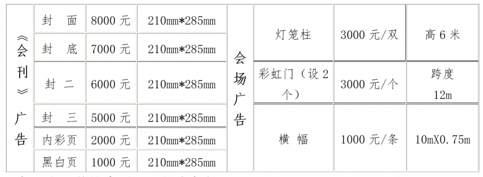 (三)凡給予大會贊助(含一個展臺位)金額達到2000元以上的企業(單位),送《會刊》三百字企業黑白文字宣傳,另送《會刊》2冊。