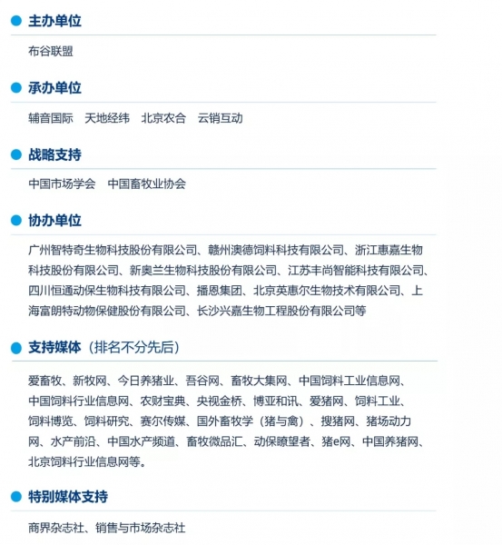 2018中國大農業營銷年會,由中國市場學會中國畜牧業協會鼎力支持,布谷聯盟主辦。大會自2012年舉辦,一年一度,已經連續成功舉辦六屆。大會致力于召集行業內最優秀的公司與企業領袖展開行業發展的深度討論與思維碰撞,匯聚價值觀點并將其轉化為可實踐的指南,打造出一個講究實戰實效的營銷盛會。 2018中國大農業營銷年會主題: 中流擊水 奮楫者進 四十年改革,長路漫漫,天翻地覆慨而慷 城與鄉,規模養殖與家庭農場 經銷商與合作社,農家樂與家庭農莊 勞動密集與智能智造,普羅大眾與個性化 自力更生與分工協作,價值、品牌無限風光 新常態、大變局,民族復興 百舸爭流,已到江心 新時期、中國夢,農業繁榮 中流擊水,奮楫者進