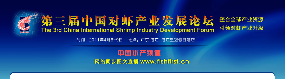 【承辦單位】: 中國水產流通與加工協會對蝦分會 湛江市外經貿局 湛江市海洋與漁業局 湛江市水產進出口企業協會 湛江水產飼料行業協會 湛江對蝦種苗行業協會 |