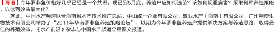 | 2011年華南羅非魚養(yǎng)殖策略論壇 (吳川站) 2011年5月11日 | ||||||||||
