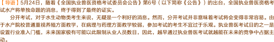 ·執業獸醫“國考”分家之后