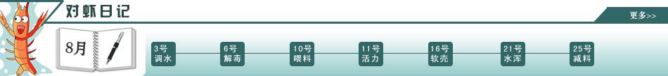 今天提繒時看到有蝦殼在繒里面,水面上沒有看到。昨天下午下了一場雨可能刺激了蝦蛻殼,蝦苗長的快的有些已經(jīng)達(dá)到四到五公分左右,平均來看蝦大概就三公分【更多】 |