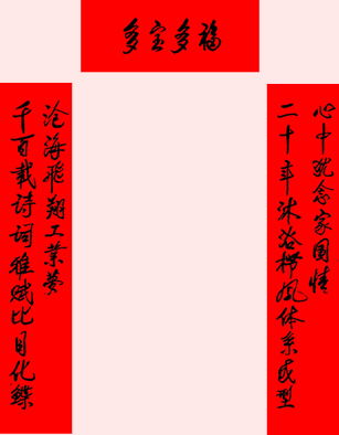 | 上聯:冬去春來,喜東南西北龍飛鳳舞 |