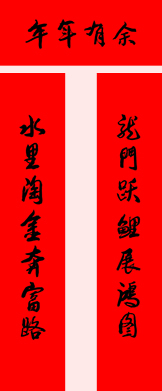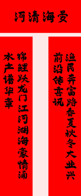 | 上聯:水產譜華章,錦鯉躍龍門,江河湖海豪情涌 |