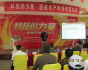 2013年5月13日、18日珠海海壹水產飼料有限公司分別在中山和珠海舉行了“科技的力量--海壹水產養殖技術論壇”, 珠海海壹總經理鄧金雁,通威股份廣東片區服務總監楊松,珠海海壹服務部經理周爭志等近千人參加會議。其中鄧總和楊總監分別針對“科技的力量”為課題進行講解,對365模式進行深入分析,周爭志經理對養殖技術、養殖成本和養殖效果進行現場分析。現場還進行了優秀養殖戶頒獎,對養殖效果較好的人員讓他們現場分享養殖心得,讓更多養殖戶能夠了解海壹、了解海壹產品。