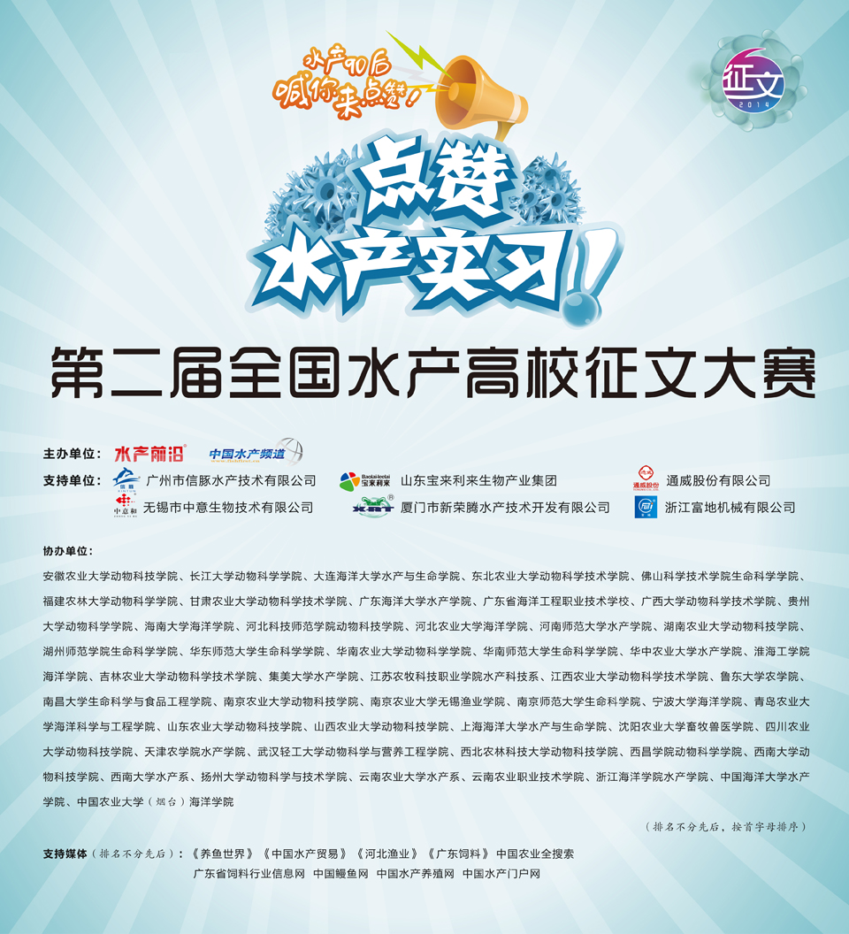 點(diǎn)贊水產(chǎn)實(shí)習(xí).第二屆全國水產(chǎn)高校征文大賽共得到了50所水產(chǎn)高校的大力協(xié)辦,共收在校學(xué)子征文百余篇,在這里他們寫下或喜或悲或苦的難忘經(jīng)歷、對(duì)于水產(chǎn)行業(yè)的思考與認(rèn)識(shí)、在夢想與現(xiàn)實(shí)的碰撞中對(duì)未來的準(zhǔn)備。