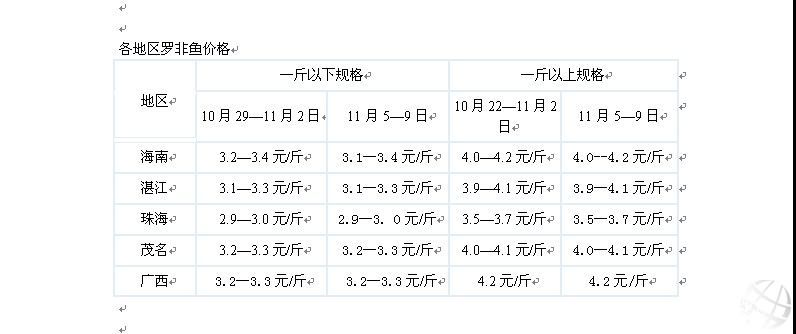 從各地區羅非魚價格表可以看出,與上周相比價格沒發生什么變化,基本上保持一致,珠海地區價格依舊是最低。
