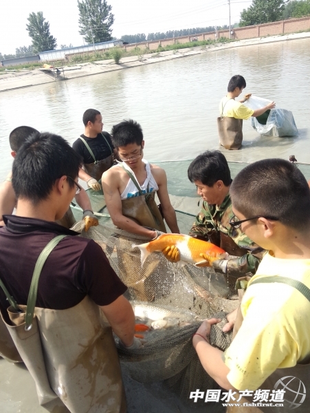 剛到基地的時候覺得一切都是那么陌生,從未真正意義上的養過魚,養的金魚都活不過三個月,帶著滿滿的好奇進入基地實習生活。最初見到觀賞魚車間里的紅白、大正、昭和、黃金,每一種錦鯉都有著獨特的色彩,看著它們緩緩游動,的確讓人賞心悅目。5月的天氣還有點冷,鯉魚進入產卵期也相對晚了幾個星期,開始準備前期工作,鋪網、搭搖床、放水、挑選親魚,然后讓親魚自然產卵,從魚卵孵化到魚苗,再把魚苗放到大水面里養殖,等到夏花根據花色進行篩選。養魚的過程需要很多的經驗,這些經驗不是課本中的理論就可也解釋的清楚,講再多遍不如自己親身體驗記得深刻。
