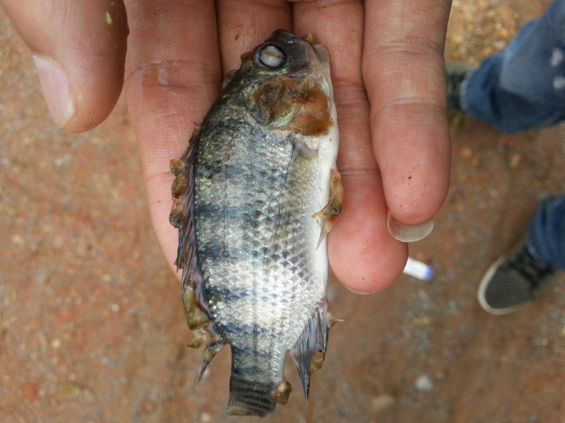 羅非魚魚苗身上長出黃色的菌絲,但是26度的水溫應該不是水霉吧,小弟也搞不懂了。 |