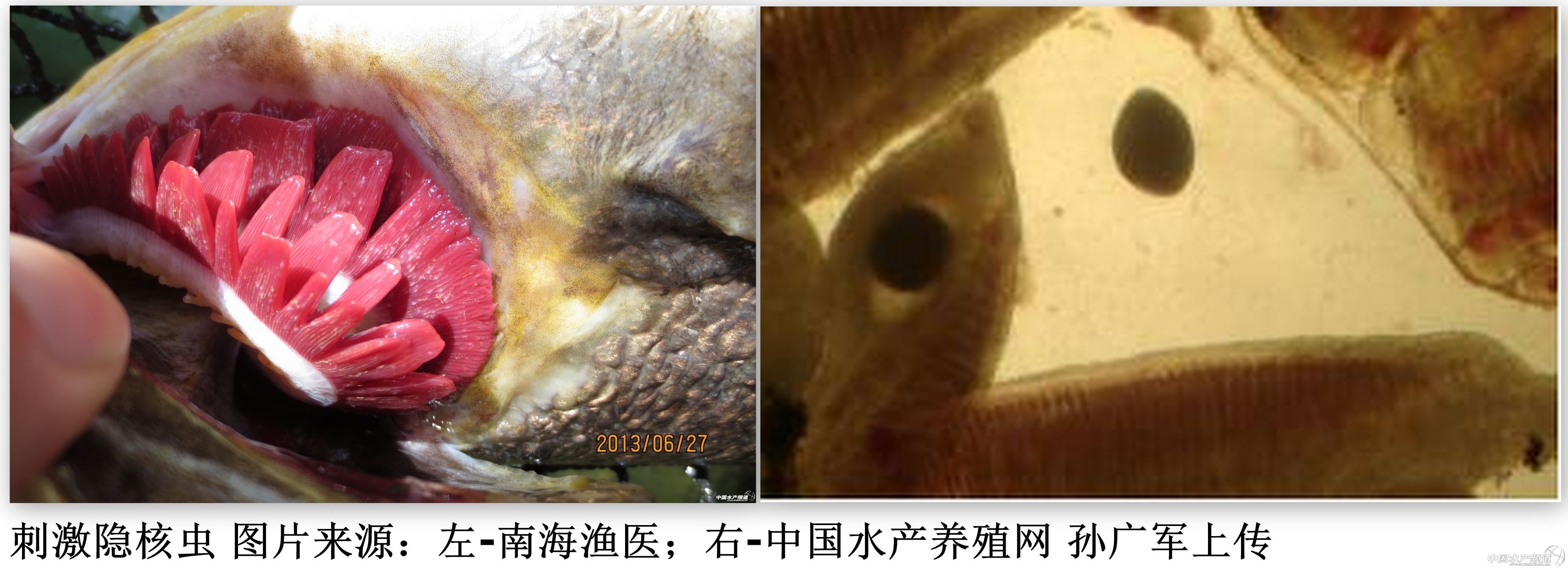 此外,南海漁醫(yī)在青斑腎小管中也發(fā)現(xiàn)了球孢蟲(chóng),同樣表現(xiàn)出后腎、脾腫大和肝臟有白色結(jié)點(diǎn)。詳見(jiàn)報(bào)道:石斑:神啦!救救我吧!!(南海漁醫(yī))