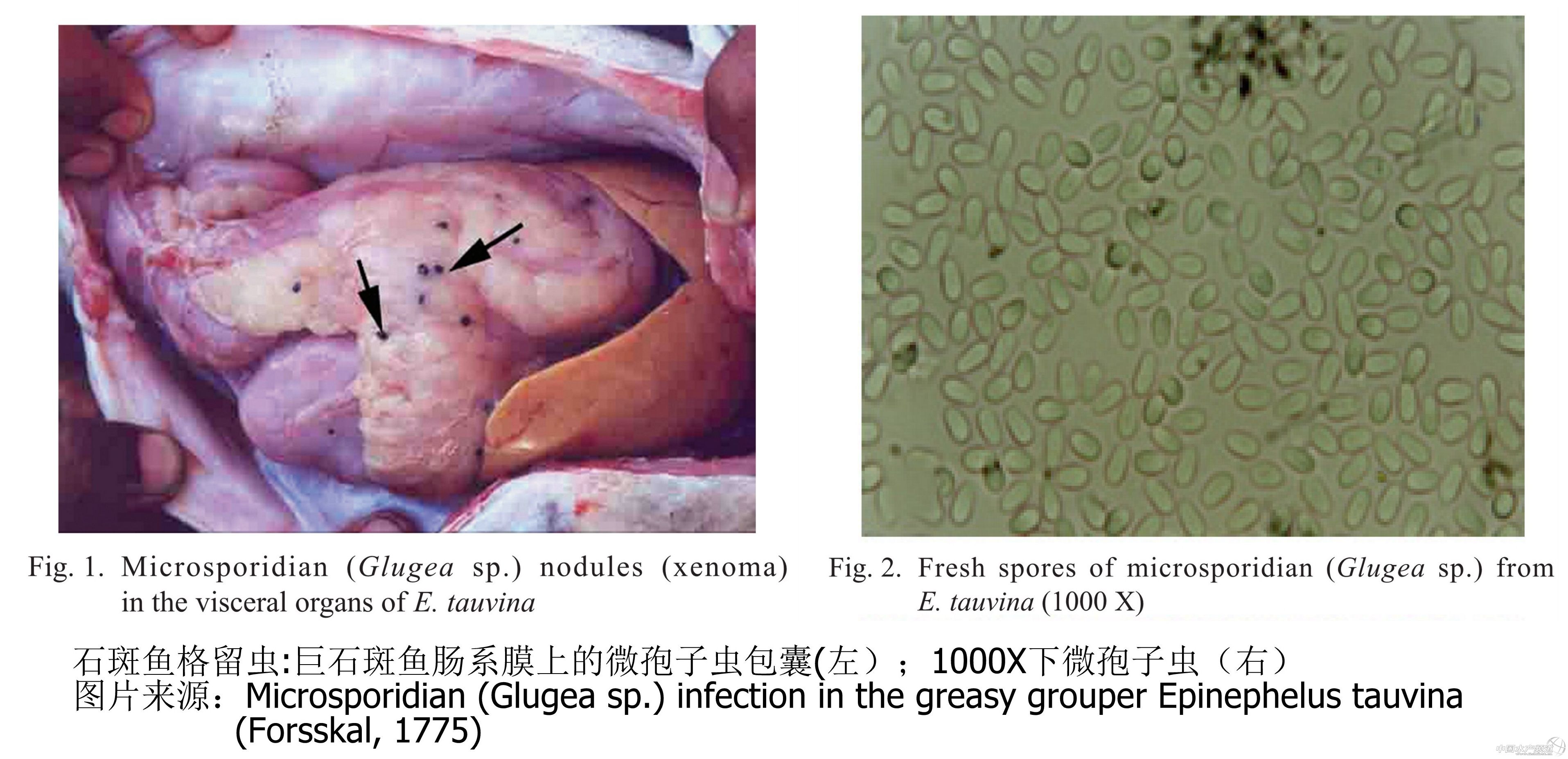 近幾年海南石斑魚(yú)標(biāo)苗過(guò)程中頻發(fā)的瘦身病,在腸道都發(fā)現(xiàn)了大量的微孢子蟲(chóng),瘦身魚(yú)的腸道中包囊并不明顯,加上養(yǎng)殖戶檢測(cè)手段有限,經(jīng)常并誤當(dāng)成白便和細(xì)菌性腸炎處理。了解此病狀可參考南海漁醫(yī)的幾篇貼子,里面有許多介紹和圖片展示:10月海南石斑魚(yú)病情;白便瘦身病-石斑魚(yú)標(biāo)苗中的新危害:又是蟲(chóng)蟲(chóng)作惡!青斑腸道微孢子蟲(chóng)(南海漁醫(yī))
