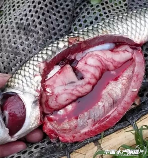 腸炎、出血多發生在青、草魚上;鰱、鳙等很少發病;