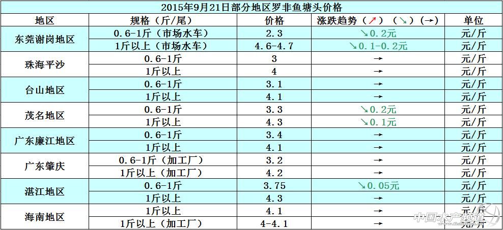 羅非魚價格周報:出口量少內