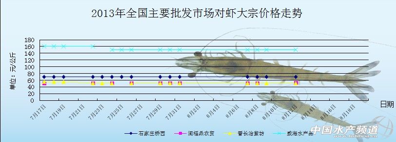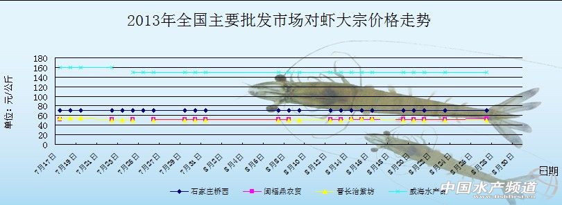 8月12日全國主要批發(fā)市場對蝦價格行情如下: 08-13